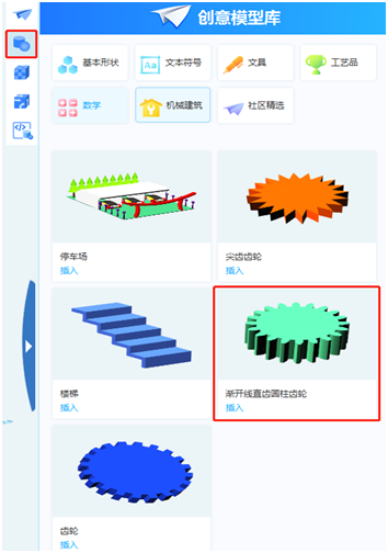 3D One V2.6版本創(chuàng)意模型庫新增漸開線直齒圓柱齒輪,一鍵生成適用于各種場景的不同大小齒輪,幫助老師同學(xué)輕松構(gòu)建各種聯(lián)動結(jié)構(gòu),堆疊出自己的創(chuàng)意模型。