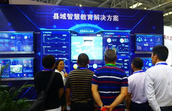 講解員小姐姐面帶職業微笑,詳細講解著有關“縣域智慧教育生態”,有關“大數據駕駛艙”,有關“縣域智慧教育云平臺”以及“區域智慧教育解決方案”的一系列運營及產品方案。