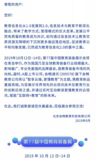 智享云端,更懂教育 | 會(huì)暢教育與您相約第77屆中國教育裝備展