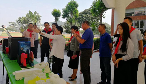 鎮田小學校長等領導參觀了解極光爾沃3D打印機,咨詢并了解3D打印的行業現狀應用,以及了解3D打印在校園的發展情況。隨行領導對3D打印模型十分好奇,表示3D打印的物品十分精致,和傳統的制造業工藝不相上下,機器自動化完成打印。生活小禮盒,擺飾等受到了喜愛,得到了一致好評。