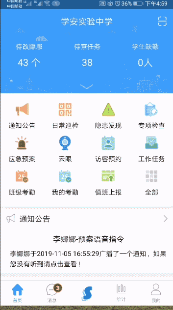 學安的消防演練:好快、好方便、好快捷...... 校園消防演練如何高效進行?學安攻略:一鍵啟動應急預案 — 廣播喊話 — 現場直播!話不多說,咱看圖說話!