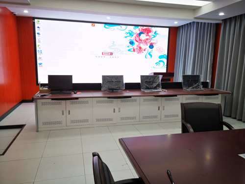 此外會議室設計了中央控制系統,主持人可集中對燈光、窗簾的開關,大屏視頻、圖文內容切換,升降器一鍵升降等控制管理,既智能又便捷。