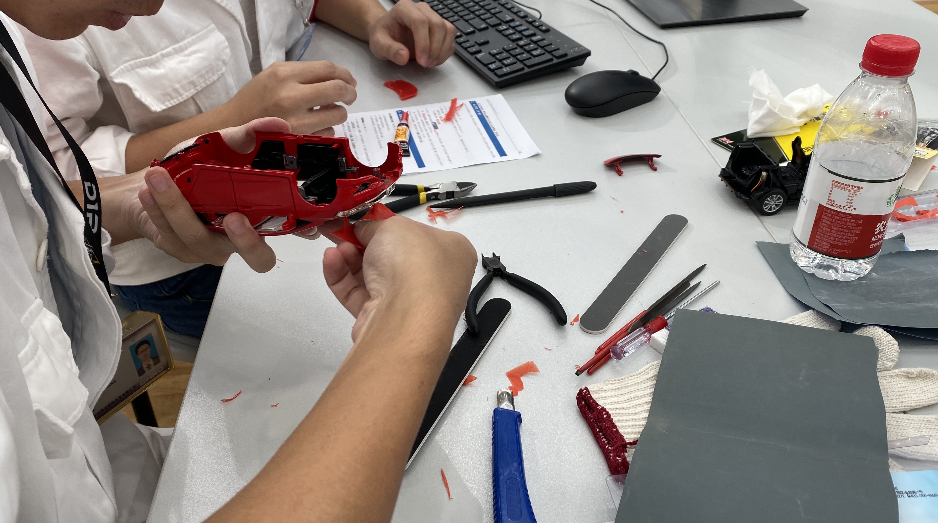 參賽選手正在精心打磨他們用3d打印機(jī)打印出來的參賽作品