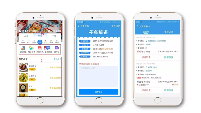 天立泰午餐工程,不僅可以方便家長隨時通過線上預約報名的方式學生在校吃午飯的問題,減少出校門的頻率,降低與外界接觸的風險;同時也可以通過陪餐反饋、值班老師上報、每日菜譜等直觀的了解到孩子在校吃了什么,吃的怎么樣,做到讓家長放心。