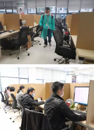 細心的工作人員提前制作大批辦公遮擋板,為員工安心辦公設立安全屏障,隔離病毒卻不能隔離同事情誼,干凈整潔的辦公室比往日安靜許多,響起的是敲擊鍵盤的噠噠聲,少了往日親切交談、你來我往的溝通——疫情背景下,話雖少但心卻更近了。