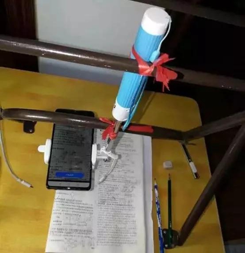 為了讓網課的效果更好,老師各顯神通,努力讓自己成為合格主播,讓云教學盡可能完美。比如,花樣百出的直播設備,有小風扇、晾衣架、自拍桿、甚至用上了電線……