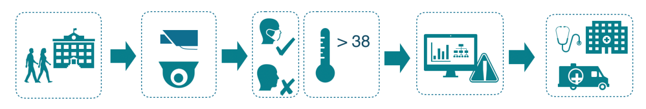 ●如發(fā)現(xiàn)體溫異常者,系統(tǒng)將實(shí)時反饋,并自動匹配其密切接觸者,做到精準(zhǔn)定位,方便追溯,有效防控,切段傳播源。