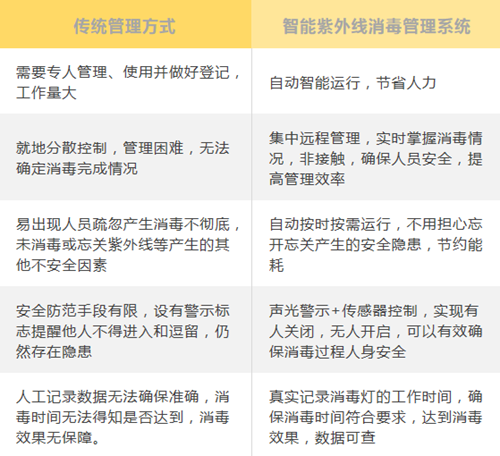 二、智能紫外線消毒管理監(jiān)控系統(tǒng):紫外線消毒燈以系統(tǒng)化連接,運(yùn)用物聯(lián)網(wǎng)、大數(shù)據(jù)及云計(jì)算等先進(jìn)技術(shù),對紫外線消毒進(jìn)行安全防范控制,量化精準(zhǔn)管理,對操作人員、監(jiān)管流程、設(shè)備等進(jìn)行信息數(shù)據(jù)化管理,確保消毒的有效性和安全性。