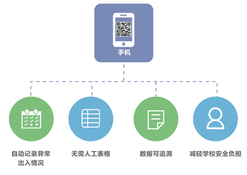 校園訪客主要分為3種類型:熟人(被邀請入校)、學(xué)生家長、陌生訪客。訪客通過APP及微信的掃一掃功能,即可完成校訪登記。無需人工表格,無需人與人接觸,系統(tǒng)將自動完成出入記錄,同時讓出入數(shù)據(jù)可追溯,為學(xué)校減輕安全管理的負(fù)擔(dān)。