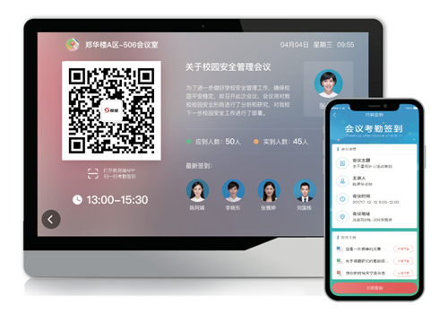基于智能終端(如電子班牌)的擴(kuò)展應(yīng)用,可以建立簽到、會議(或公開課)資料上傳、掃碼下載等任務(wù)。老師通過APP掃描二維碼,完成簽到的同時,還可輕松獲取會議(或公開課)資料,資料支持在線預(yù)覽及下載。無接觸簽到的同時自動生成電子簽到記錄,無需人工整理統(tǒng)計,提升了效率;通過掃描動態(tài)二維碼,也可以有效避免代簽到現(xiàn)象的出現(xiàn)。