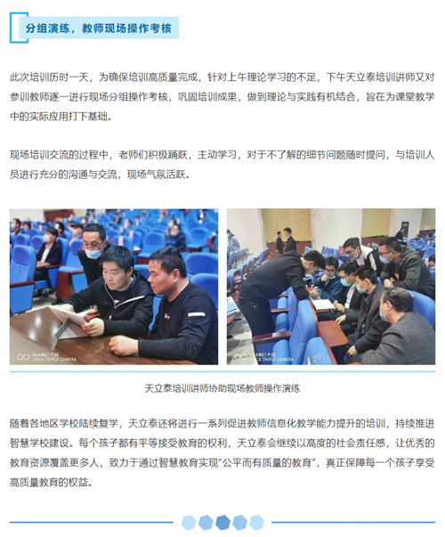 近日,為提升教育信息化水平,進(jìn)一步推進(jìn)貧困地區(qū)小規(guī)模學(xué)校(教學(xué)點(diǎn))智慧課堂的建設(shè),實(shí)現(xiàn)義務(wù)教育優(yōu)質(zhì)資源共享。天立泰這次來到霍邱縣教育局,進(jìn)行了一場(chǎng)為期一天的義務(wù)教育小規(guī)模學(xué)校(教學(xué)點(diǎn))智慧課堂產(chǎn)品培訓(xùn)會(huì)。