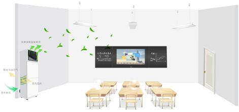 綜合1、 2, 取較大值,故高中教室新風量不小于1800m3/h。考慮學生可能超過50人,同時考慮管道漏風等因素,宜選兩臺1000m3/h的柜機或吊頂新風機,應有溫度、濕度,二氧化碳、甲醛、PM2.5、TVOC數值顯示,以實現對教室內的空氣進行實時監測,新風機應為正式新風機,當為雙向流新風機時,排風量為新風量的0.8倍,以保證教室為正壓。
