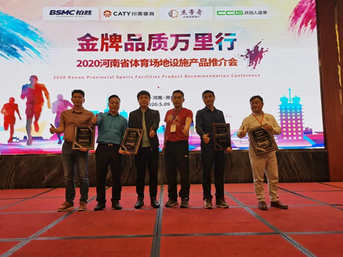 廣東柏勝新材料股份有限公司、河北杰帝奇體育用品有限公司、江蘇共創人造草坪股份有限公司、廣東川奧高新科技有限公司四家企業,多年來受到河南省體育場地設施教育和體育系統的專家、學者與建設工程商企業家大力支持與認可,為響應國家品牌發展號召,2020年5月9日,四家企業齊聚河南商都鄭州文森特國際酒店聯合舉辦「金牌品質萬里行」2020河南省體育場地設施產品推介會活動。
