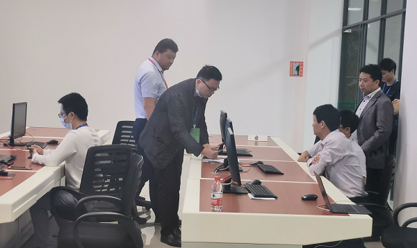 中國工程院院士、湖南農(nóng)業(yè)大學(xué)教授劉仲華在湄潭縣委縣政府領(lǐng)導(dǎo)陪同下考察茶葉溯源系統(tǒng)