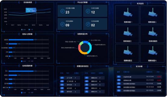 管理平臺綜合三大防(人防、物防、技防),將校園內所有人、事、物、場景集中在此平臺上呈現。教育管理者可以在平臺上管理校園內所有人員動態、管理流程、系統設備等,進行科學管理與決策。同時平臺與多個區域級、市級系統管理平臺對接,打通與公安系統、消防系統、應急系統、衛健委等融合,聯動。在開展校園24小時實時監控時,如發生預警,可根據事先制定相應的預案流程,智能分析,及時作出響應進行聯動執行,全方位保障學校師生安全。