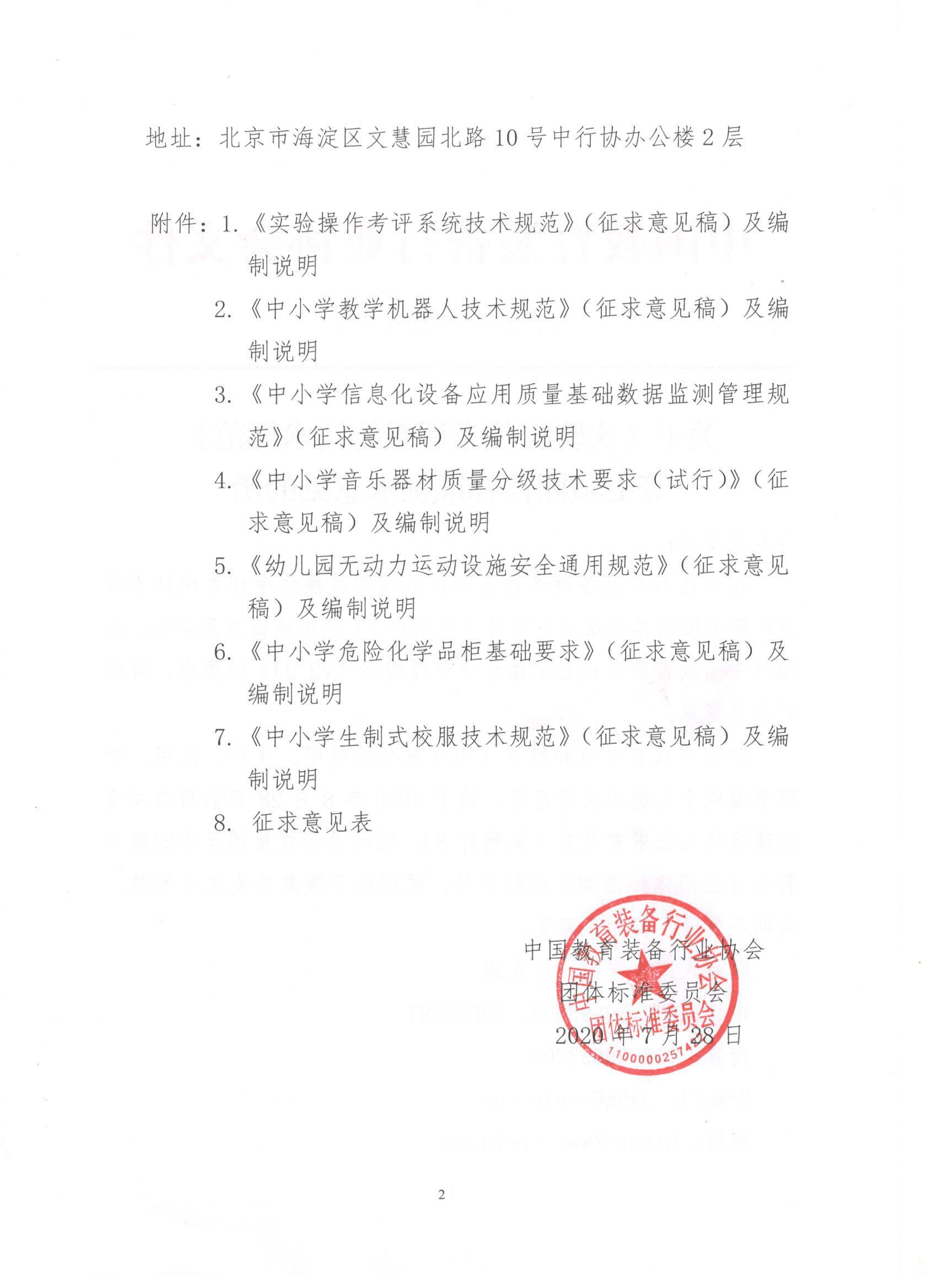 歡迎與教育裝備和標準化工作有關的科研、生產、使用、管理單位或個人提出寶貴意見,請于2020年8月28日前將有關意見建議填入征求意見表(見附件8),以函件形式反饋至中國教育裝備行業團體標準委員會秘書處,或以電子版意見發電子郵箱。逾期不復函,視為無意見。