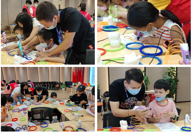 在認真聽完極光哥哥對于3D打印原理、3D打印技術、3D打印機等基礎知識講解后,小朋友們又認真地聽取了極光哥哥對于3D打印筆的講解。
