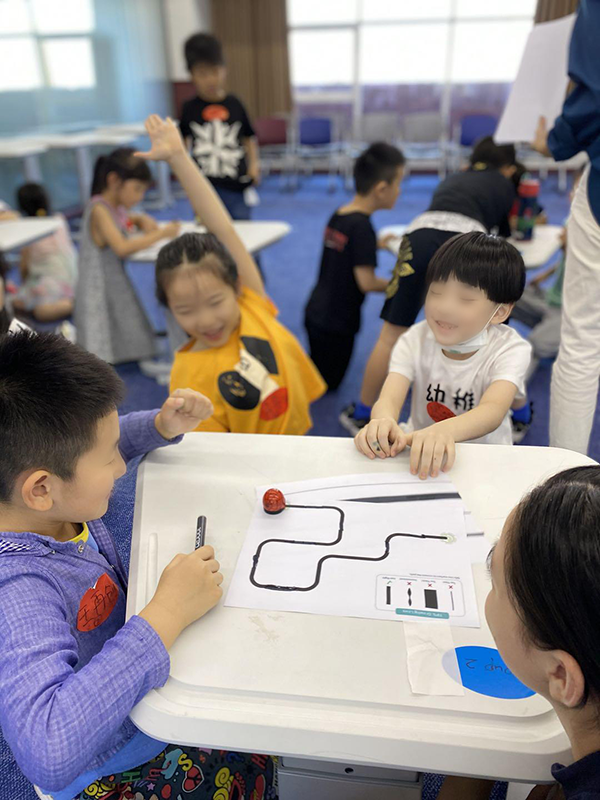 在創(chuàng)造樂(lè)園老師的引導(dǎo)下,學(xué)生們瞬間被機(jī)器人可愛的外型和極具創(chuàng)造力的玩法所深深吸引,紛紛積極響應(yīng),課堂氣氛十分活躍。通過(guò)游戲啟蒙,6-7 歲的學(xué)生逐漸培養(yǎng)對(duì)編程的興趣,鍛煉邏輯思維,為更深層次的編程和人工智能學(xué)習(xí)打好基礎(chǔ)。