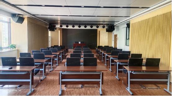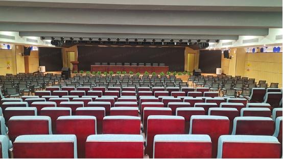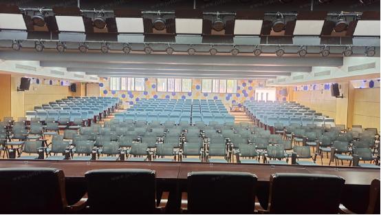學校報告廳,作為長期舉辦大型主題會議、演講報告、學術交流、培訓會,同時兼具文藝演出活動的多功能多用途廳,對搭建的音頻系統有著較高需求。根據場地的高度和場地面積,主擴聲選擇6只JUSBE多功能XF系列音箱,安裝在觀眾區前排、中區、后區位置,具備高平滑的頻率響應及激動人心的動感音質表現。精確調整擴聲聲源,實現聲音均勻覆蓋無死角。在主席臺下設計了超低音箱和返聽音箱,保證主擴聲的低頻性能和主席臺上擁有清晰可懂的語音。輔以調音臺、周邊音頻效果器,使得整個系統在聲音處理上變得更加靈活、高效,最大還原現場聲音的真實性和保真度。