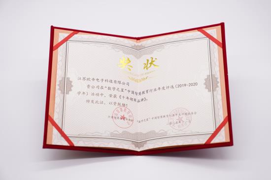 “數字之星”對十年領軍品牌的評獎標準是:品牌創立時間 10 年以上,在過去 10 年間引領了產業發展。作為行業的領頭羊,它不僅僅是明星品牌,更是業界典范。在企業進步、行業發展和技術創新的諸多方面推動了中國智慧教育產業的蓬勃發展,為我國智慧教育產業的進一步完善做出了杰出貢獻。