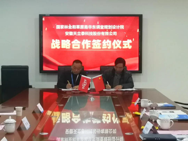 為全面加強合作,響應國家“林長制”、以國家公園為主體的自然保護地及森林防火信息化建設,推動共建共享,釋放發展活力,推進林草資源保護和監測事業高質量可持續發展。國家林業和草原局華東調查規劃設計院(以下簡稱“華東院”)與安徽天立泰科技股份有限公司(以下簡稱“安徽天立泰”)本著友好合作,優勢互補,互惠雙贏的原則,經雙方協商,達成戰略合作意愿,并正式于1月5日在安徽天立泰成功舉行戰略合作簽約儀式。