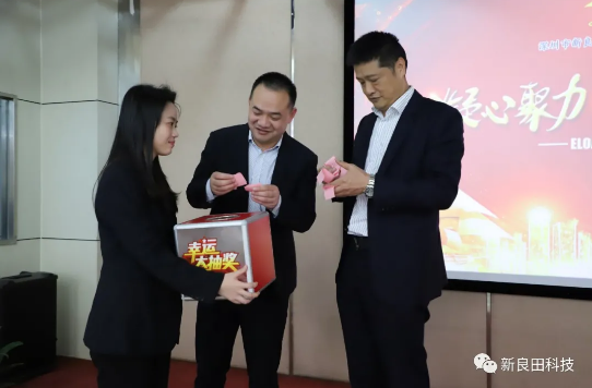 新良田于2021年2月3日于多媒體大會議室舉行年終頒獎和抽獎活動,主題為“凝心聚力,筑夢遠航”,全體同事及深一龍代表出席。