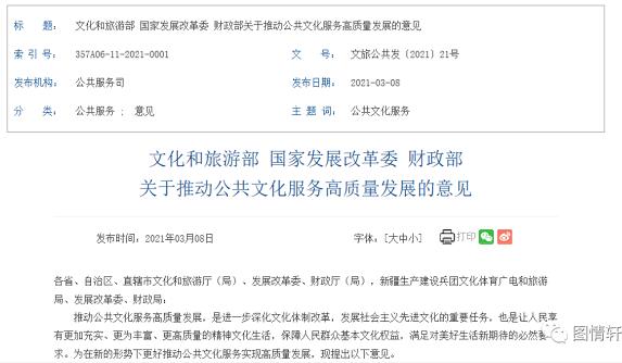 近日,據(jù)文化和旅游部官網(wǎng),文化和旅游部、國家發(fā)展改革委、財(cái)政部近日聯(lián)合印發(fā)了《關(guān)于推動(dòng)公共文化服務(wù)高質(zhì)量發(fā)展的意見》。