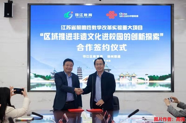 2021年4月19日上午,揚(yáng)州聯(lián)通與揚(yáng)州邗江區(qū)教育局簽訂江蘇省前瞻性教學(xué)改革實(shí)驗(yàn)重大項(xiàng)目“區(qū)域推進(jìn)非遺文化進(jìn)校園的信息化創(chuàng)新探索”合作協(xié)議。揚(yáng)州聯(lián)通總經(jīng)理陳宜進(jìn),邗江教育局局長(zhǎng)何云峰出席簽約儀式。雙方將攜手共同打造全國(guó)教育行業(yè)5G智慧校園領(lǐng)域的標(biāo)桿。以聯(lián)通5G為基礎(chǔ),實(shí)現(xiàn)智慧校園萬(wàn)物智聯(lián),采用人、機(jī)、物深度融合發(fā)展的支撐和技術(shù)手段,建設(shè)“線上線下非遺文化推廣平臺(tái)”,實(shí)現(xiàn)“入理念、入環(huán)境、入課程、入活動(dòng)、入管理、入文化、入成長(zhǎng)”的校園特色教育,充分發(fā)揮先進(jìn)典型的示范引領(lǐng)作用,為8萬(wàn)多名校園在校學(xué)生提供線上線下一體化非遺信息化服務(wù)。