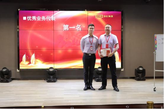 會(huì)議上,集團(tuán)領(lǐng)導(dǎo)對(duì)第一季度優(yōu)秀銷售冠亞軍和優(yōu)秀業(yè)務(wù)代表進(jìn)行了頒獎(jiǎng),以資鼓勵(lì)。