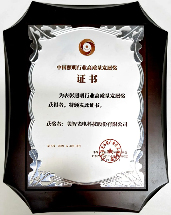 榮譽(yù)見證 美智光電榮獲中國照明行業(yè)高質(zhì)量發(fā)展獎(jiǎng)