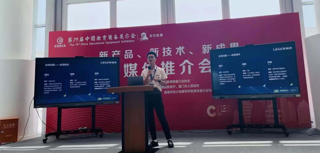 開(kāi)展第二天,萊福德受中國(guó)教育裝備行業(yè)協(xié)會(huì)邀請(qǐng),在廈門(mén)國(guó)際會(huì)議展覽中心B2館鷺江廳序廳進(jìn)行“新產(chǎn)品、新技術(shù)、新成果”發(fā)布會(huì),本次發(fā)布會(huì)總計(jì)19家教育裝備企業(yè)參與,其中照明細(xì)分領(lǐng)域僅有萊福德與立信達(dá)兩家受邀參加。