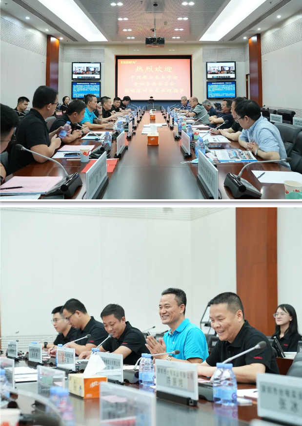 5月7日,中國舞臺(tái)美術(shù)學(xué)會(huì)音響專業(yè)委員會(huì)主任韓宏志老師、中國舞臺(tái)美術(shù)學(xué)會(huì)音響專業(yè)委員會(huì)副主任劉永剛老師、原中國舞臺(tái)美術(shù)學(xué)會(huì)副會(huì)長苗培如老師、中廣電廣播電影電視設(shè)計(jì)研究院陳建華老師、北京市建筑設(shè)計(jì)研究院有限公司陳金京老師、著名音響師吳天軍老師等專家蒞臨深圳臺(tái)電公司參觀調(diào)研。深圳市臺(tái)電實(shí)業(yè)有限公司董事長、總裁周慶東先生、副總裁葉冬茂先生、教育事業(yè)部總經(jīng)理張齊博先生及會(huì)議事業(yè)部東區(qū)總經(jīng)理林瀚煜先生、會(huì)議事業(yè)部北區(qū)總經(jīng)理陳振煒先生等領(lǐng)導(dǎo)熱情接待。