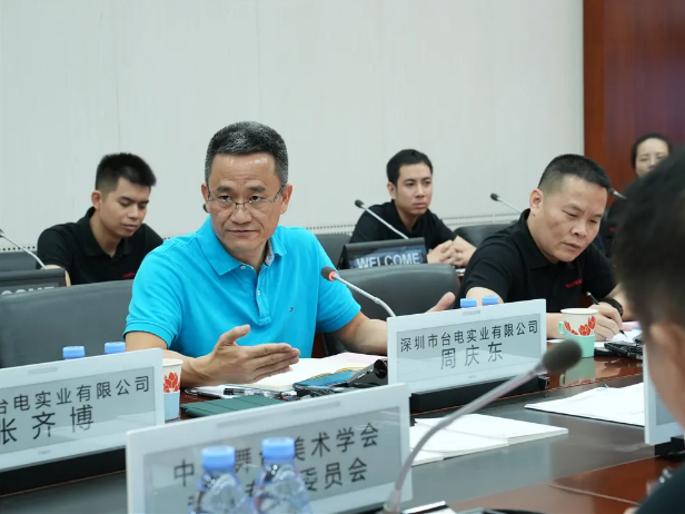 周慶東董事長首先致歡迎辭,他表示非常榮幸能夠邀請(qǐng)到舞美學(xué)會(huì)各專家老師來臺(tái)電公司指導(dǎo)交流。臺(tái)電公司發(fā)展至今已是第25個(gè)年頭,也是在各界領(lǐng)導(dǎo)及專家老師的幫助和支持下越走越好,不斷升級(jí)壯大。臺(tái)電25個(gè)年頭只做一件事情——專注會(huì)議系統(tǒng)的研發(fā)和制造。