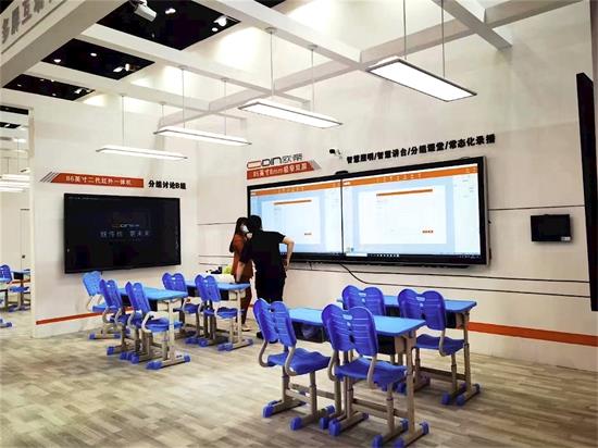 結合了前沿科技與傳統教學優勢的標準型智慧教室和多屏互動智慧教室也收獲滿滿人氣,98英寸記憶黑板、8mm極窄雙屏、雙邊紅外云黑板、智慧云班牌、智慧照明(黑板燈、教室燈)與智慧講臺等產品集中呈現教育信息化成果,助力智慧教育高質量發展。