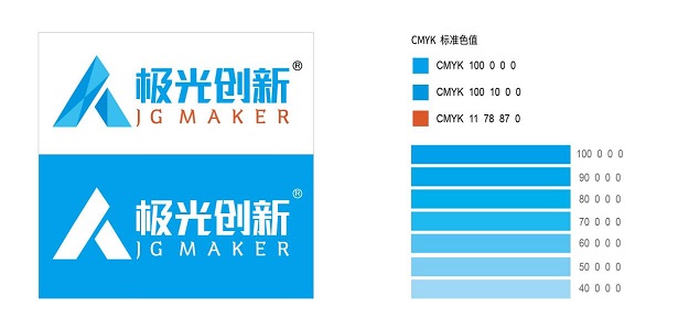 建立信任關系——新LOGO繼承了原LOGO的藍色,并簡化提取出了信任藍與品質藍。極光創新堅信品質為勝,產品品質是企業的核心競爭力。我們建立了多維度的用戶反饋機制以及3D打印產品周邊服務體系,并不斷尋求完善與提升。以優異的產品品質來獲得用戶信任,才能贏得市場,贏得未來。