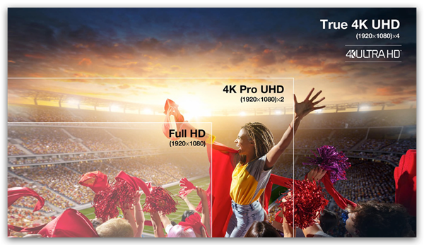 刷新率是顯示設備每秒更新新圖像的次數。240Hz表示每秒刷新240次。刷新率越高,您的監視器每秒可以顯示的幀數就越多,屏幕上的圖像顯示就越平滑。開啟“增強游戲”模式,圖像輸出為1080P, 240Hz刷新率,是標準PC游戲顯示器的4倍。UHD516高達240Hz刷新率與4ms低輸入延遲,另外,支持MVD 3D視頻編碼技術,搭配DLP 3D眼鏡,帶來沉浸式的觀影及游戲體驗。