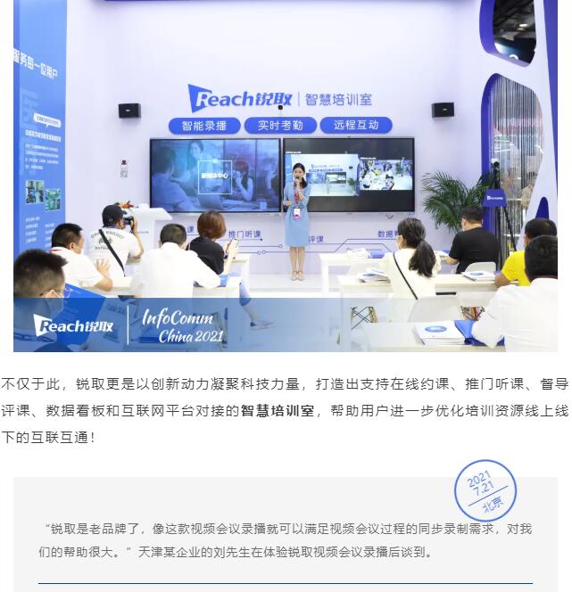 “銳取培訓中心的整體方案,能夠幫助我們企業輕松實現培訓室的快速部署和智慧改造。”駐足于智慧培訓室展示區的王先生如是說。