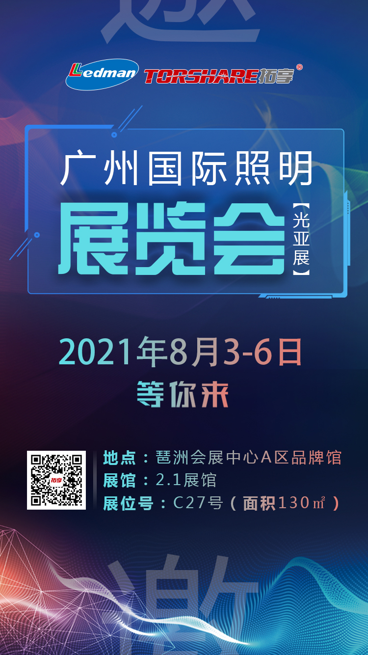 8月3-6日,拓享科技邀您一起參加,2021第26屆廣州國際照明展覽會(光亞展)!