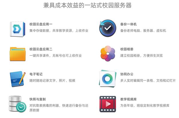 群暉的一機多用,改變了“單一”、“封閉”式的辦學模式。針對不同的教育場景需求,其課堂筆記、定制教學視頻資源庫、校園相冊、平安校園監控等更多類個性化應用,真正實現了無縫對接且方便快捷。