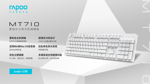 魅白,鋒雅,雷柏MT710辦公背光機械鍵盤