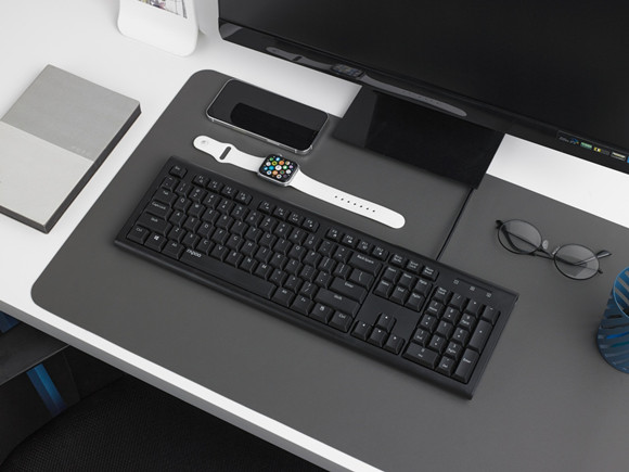 NX1700選色為黑色,根據現代簡約風格的調性而去做的調色,在現代簡約審美“黑白灰”的調調下,黑色顯得百搭,并且也符合辦公環境的正式感。因為是定位辦公的套裝,雷柏大廠也貼心的做了一些小設計,針對辦公室大家生活中的場景,NX1700的鍵盤搭配了防濺灑功能,在辦公場景下,水、咖啡、茶、飲料都是打工人的標配,但總歸避免不了“意外”的發生,有了防濺灑功能大家還是能夠放心的面對意外來臨~
