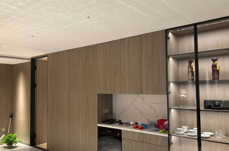 該公寓利用了萊福德往期燈帶應用分享中的櫥柜照明設計,利用小燈帶及筒燈,讓整個櫥柜更加明亮通透,不僅方便使用,整個燈光開啟后也與房間內其他空間相呼應,提高房間整體設計感。