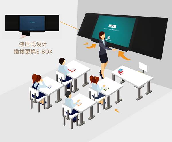將視頻卡、OPS等易損部件全部集成在一個小盒子里,如果出現故障,只需直接拉出更換備份E-Box,無需等待上門維修服務,不耽誤學校正常教學活動。