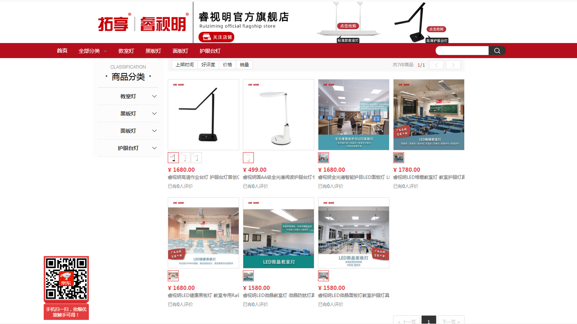 目前,睿視明官方旗艦店已成功上線一批品質優良的教育健康照明產品,包含LED健康教室燈、LED健康黑板燈、LED護目面板燈及護眼臺燈四大系列。此外,還可根據客戶需要,提供不同教室的照明解決方案,并為批量采購的客戶提供臺燈禮品定制等個性化服務。