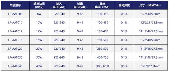 相比國內常見可控硅調光產品,萊福德該款產品不僅擁有0.1%調光深度、平滑優異的調光效果、小體積(8W:122*40*25mm;10W:142*30*26mm),還擁有全系列認證,填補市場小體積高質量過認證可控硅電源