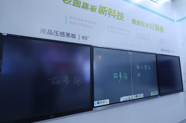 本屆展示會,好易寫科技以“校園黑板新科技,健康教學(xué)好裝備”為主題,以65寸和70寸液晶壓感黑板為主,分別適配86寸和75寸教育一體機,全面展示0粉筆黑板新解決方案。