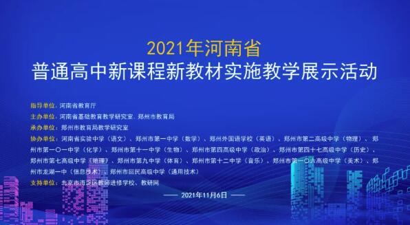 為了更好的推進新課程、新教材的實施,提升區(qū)域高中教師新課程、新教材實施能力。2021年11月6日,由河南省教育廳指導,河南省基礎教育教學研究室、鄭州市教育局主辦的“2021年河南省普通高中新課程新教材實施教學展示活動”在鄭州市14所省級示范高中舉行,并面向全國開展網絡直播。