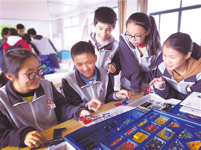 浙江省海鹽縣秦山中學學生在創新實驗室里做實驗。學校供圖