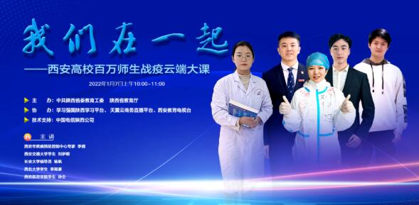 為進(jìn)一步凝聚高校師生力量,堅(jiān)定戰(zhàn)疫必勝的信心,由陜西省委教育工委、陜西省教育廳組織的“我們?cè)谝黄稹靼哺咝0偃f(wàn)師生戰(zhàn)‘疫’云端大課”,于2022年1月7日上午10時(shí)在西安各大高校線上開展。