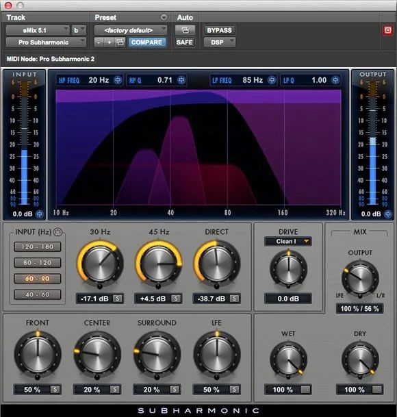 從信號頻譜的不同部分創(chuàng)建次諧波 - 使用較低的設(shè)置來增加底鼓和爆炸的力量,使用較高的設(shè)置來增加低音線和中低音樂器的豐滿度